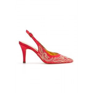 Kadın Kırmızı Piko İşlemeli İnce Topuklu Sivri Burunlu Arkası Açık Şık Abiye Stiletto
