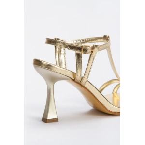 Kadın Altın Metalik Bilekten Ayarlamalı Şık Direk Model Biye Detaylı Abiye Ayakkabı