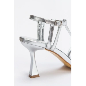Kadın Gümüş Metalik Bilekten Ayarlamalı Şık Direk Model Biye Detaylı Abiye Ayakkabı