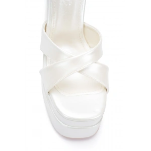 Kadın Beyaz Suni Deri Cilt Yüksek Platform Topuklu Arkası Açık Rahat ve Şık Abiye Ayakkabı