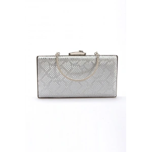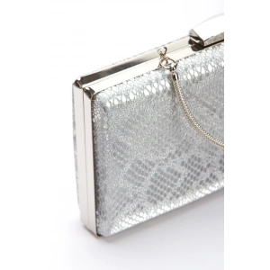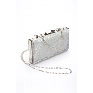 Kadın Gümüş Metalik Tek Bantlı Biye Yılan Detaylı Abiye Ayakkabı
