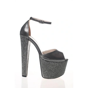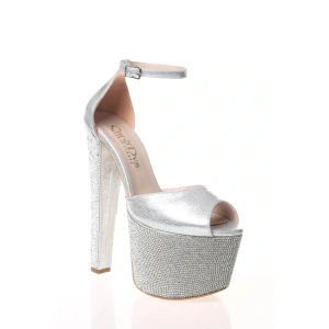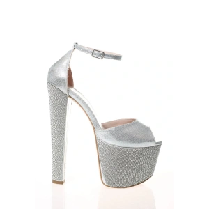 Kadın Gümüş Taşlarla Bezenmiş Yüksek Platform ve Yüksek Topuklu Arkası Kapalı Şık Abiye Ayakkabı