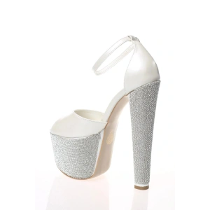 Kadın Beyaz Platformlu İnce Topuklu Şık 3 Sıralı Taş Detaylı Abiye Ayakkabı