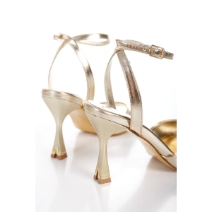 Kadın Altın Metalik Tek Bant Şık İkonik Galvaniz Tasarımlı Topuklu Yazlık Ayakkabı