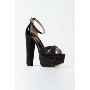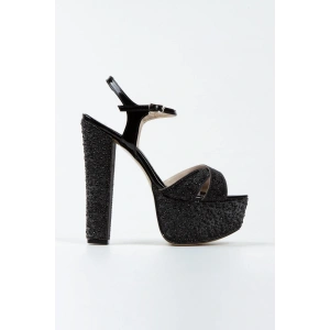 Kadın Siyah Damla Taşlı Yüksek Platform Arkası Kapalı Kalın Topuklu Rahat ve Şık Abiye Ayakkabı