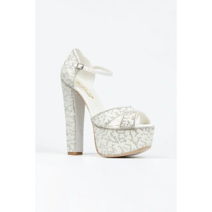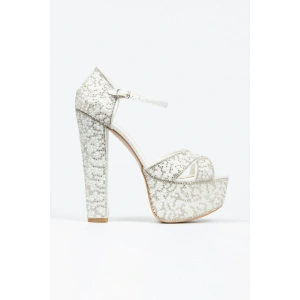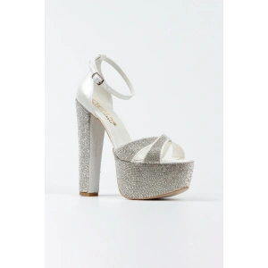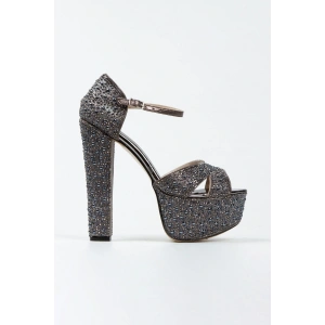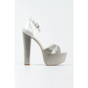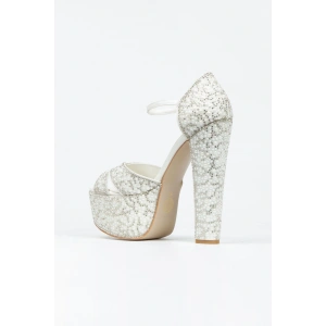 Kadın Platin Damla Taşlı Yüksek Platform Arkası Kapalı Kalın Topuklu Rahat ve Şık Abiye Ayakkabı