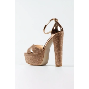 Kadın Rose Arkası Açık Parlak Damla Taşlı Platformlu İnce Topuklu Şık Abiye Ayakkabı