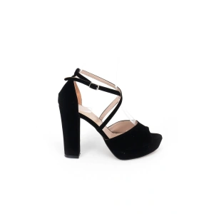 Kadın Siyah Süet Burnu Açık Yüksek Platform Kalın Topuklu Rahat ve Şık Ayakkabı
