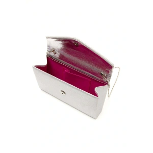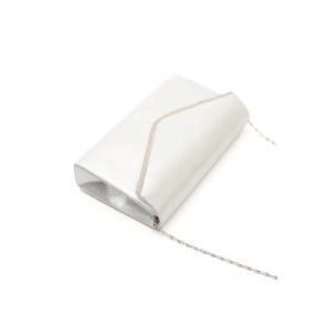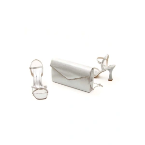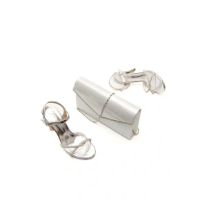 Kadın Gümüş Arkası Fermuarlı Bilekten Şık Damla Taşlı Platformlu Abiye Ayakkabı ve Çanta Kombini
