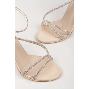 Kadın Ten-Bej Abiye Parlak Damla Taşlı Bilekten Ayarlamalı Şık Klipsli Yazlık ve Rahat Ayakkabı