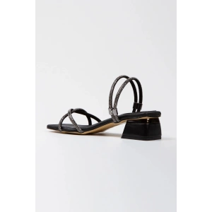 Kadın Siyah Metalik Çift Bantlı Arkası Fermuarlı Bilekten Şık Damla Taşlı Platformlu Abiye Ayakkabı