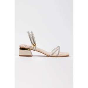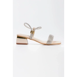 Kadın Bej Yumuşak Tabanlı Kalın Topuklu Parlak Damla Taşlı Klipsi Rahat Ve Şık Ayakkabı