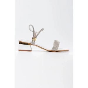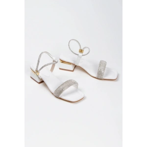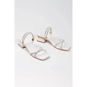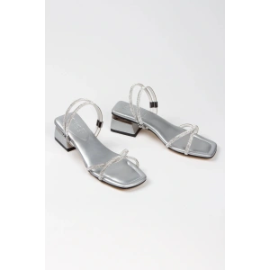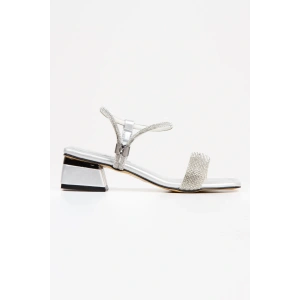 Kadın Gümüş Abiye Parlak Damla Taşlı Bilekten Ayarlamalı Şık Klipsli Yazlık Ve Rahat Ayakkabı