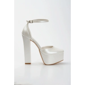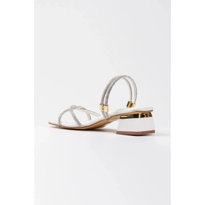 Kadın Beyaz Abiye Parlak Damla Taşlı Bilekten Ayarlamalı Şık Klipsli Yazlık ve Rahat Ayakkabı