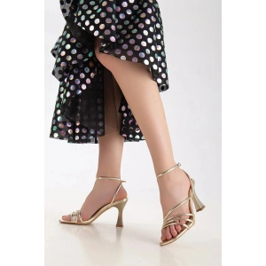 Kadın Altın Metalik Biyeli Abiye Kadeh Topuklu Yazlık Şık ve Rahat Ayakkabı