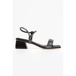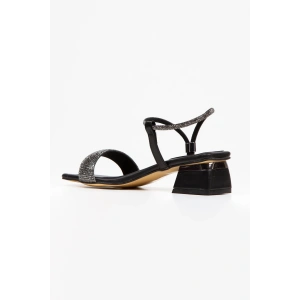 Kadın Siyah Abiye Parlak Damla Taşlı Bilekten Ayarlamalı Şık Klipsli Yazlık ve Rahat Ayakkabı