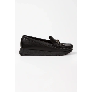Kadın Siyah Suni Deri Cilt Düz Topuklu Rahat Babet Ayakkabı