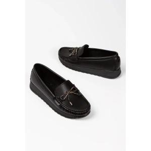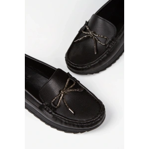 Kadın Siyah Düz Topuklu Fiyonk Detaylı Rahat Babet Ayakkabı