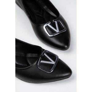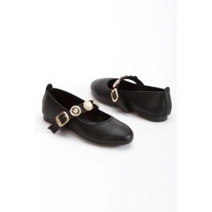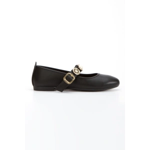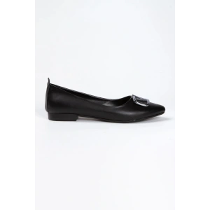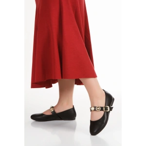 Kadın Siyah Düz Topuklu Şık Toka Detaylı Rahat Babet Ayakkabı