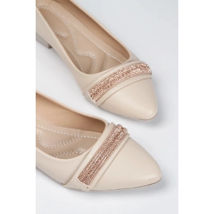 Kadın Bej-Ten Suni Deri Cilt Şık Taş Detaylı Rahat Babet