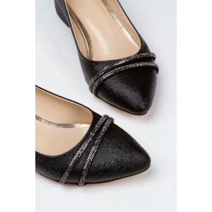 Kadın Siyah Parlak Şık Çift Taraflı Taş Detaylı Rahat Babet