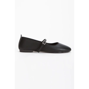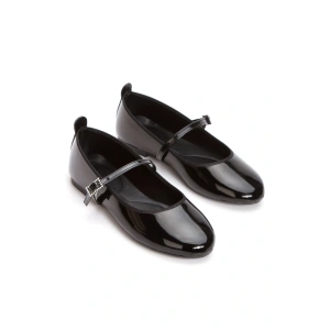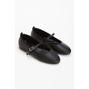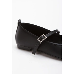 Kadın Siyah Düz Topuklu Çapraz Toka Detaylı Rahat Babet Ayakkabı
