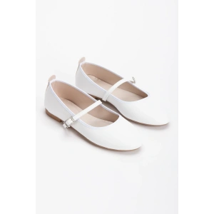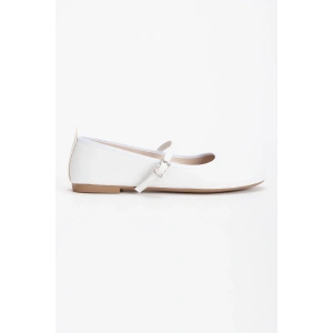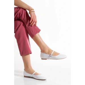 Kadın Beyaz Düz Topuklu Çapraz Toka Detaylı Rahat Babet Ayakkabı
