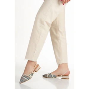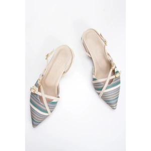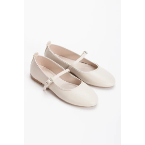 Kadın Bej Düz Topuklu Çapraz Toka Detaylı Rahat Babet Ayakkabı