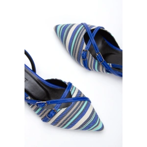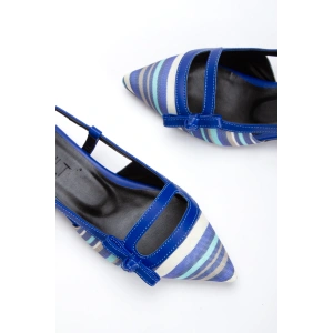 Kadın Mavi Düz Topuklu Çapraz Toka Detaylı Rahat Babet Ayakkabı