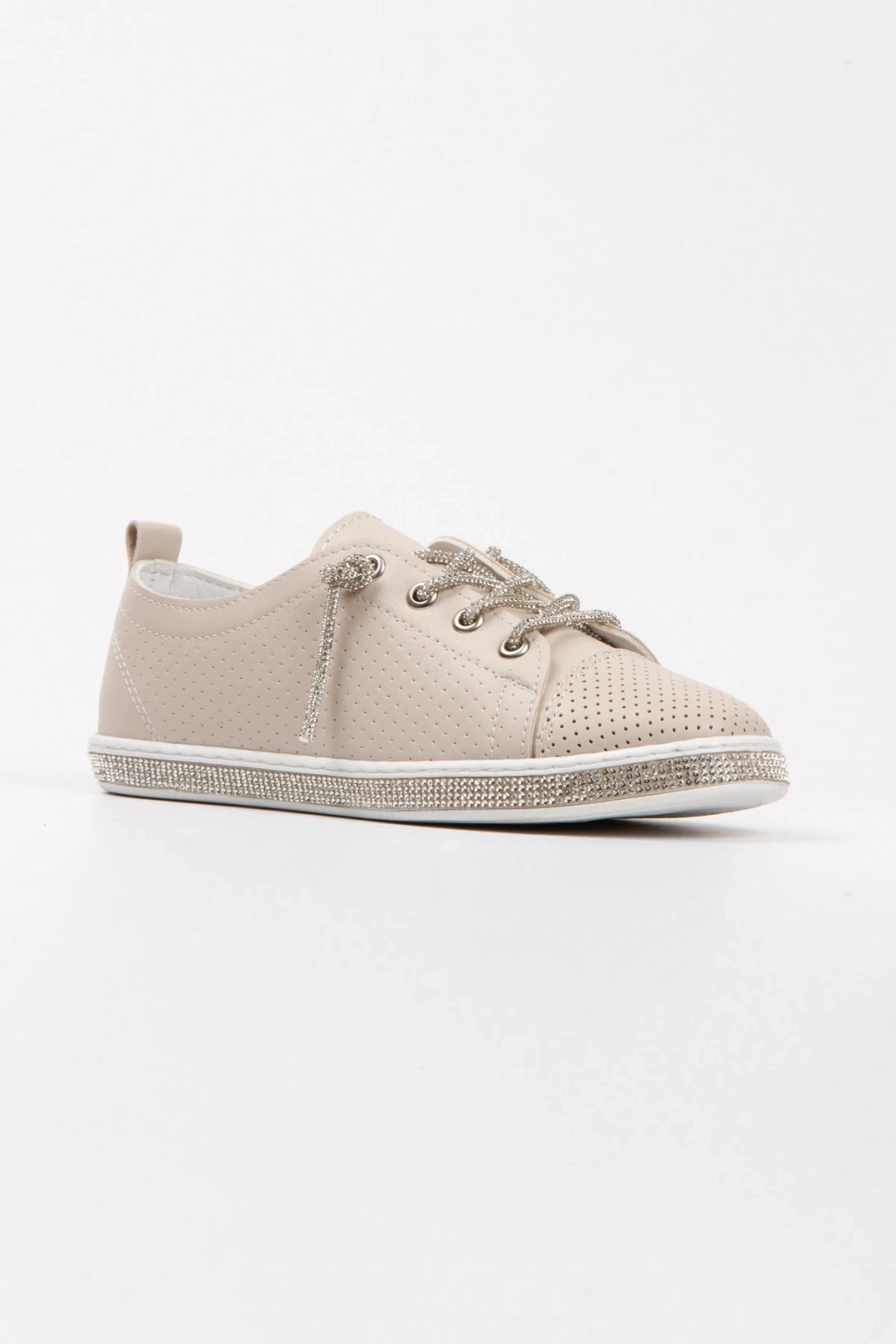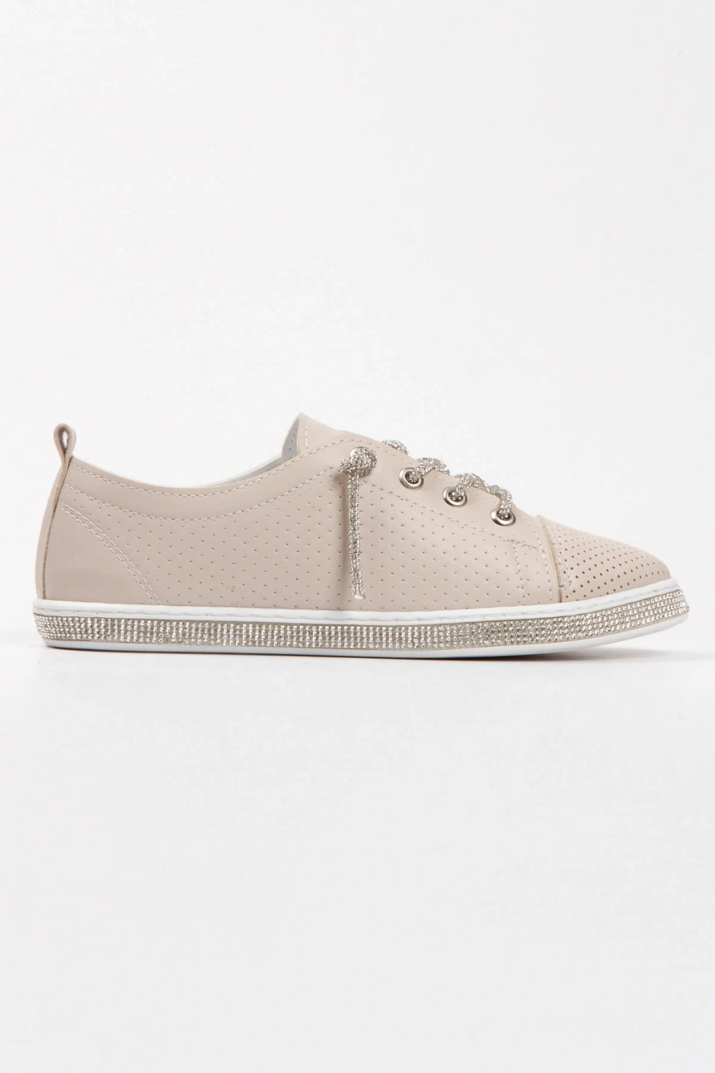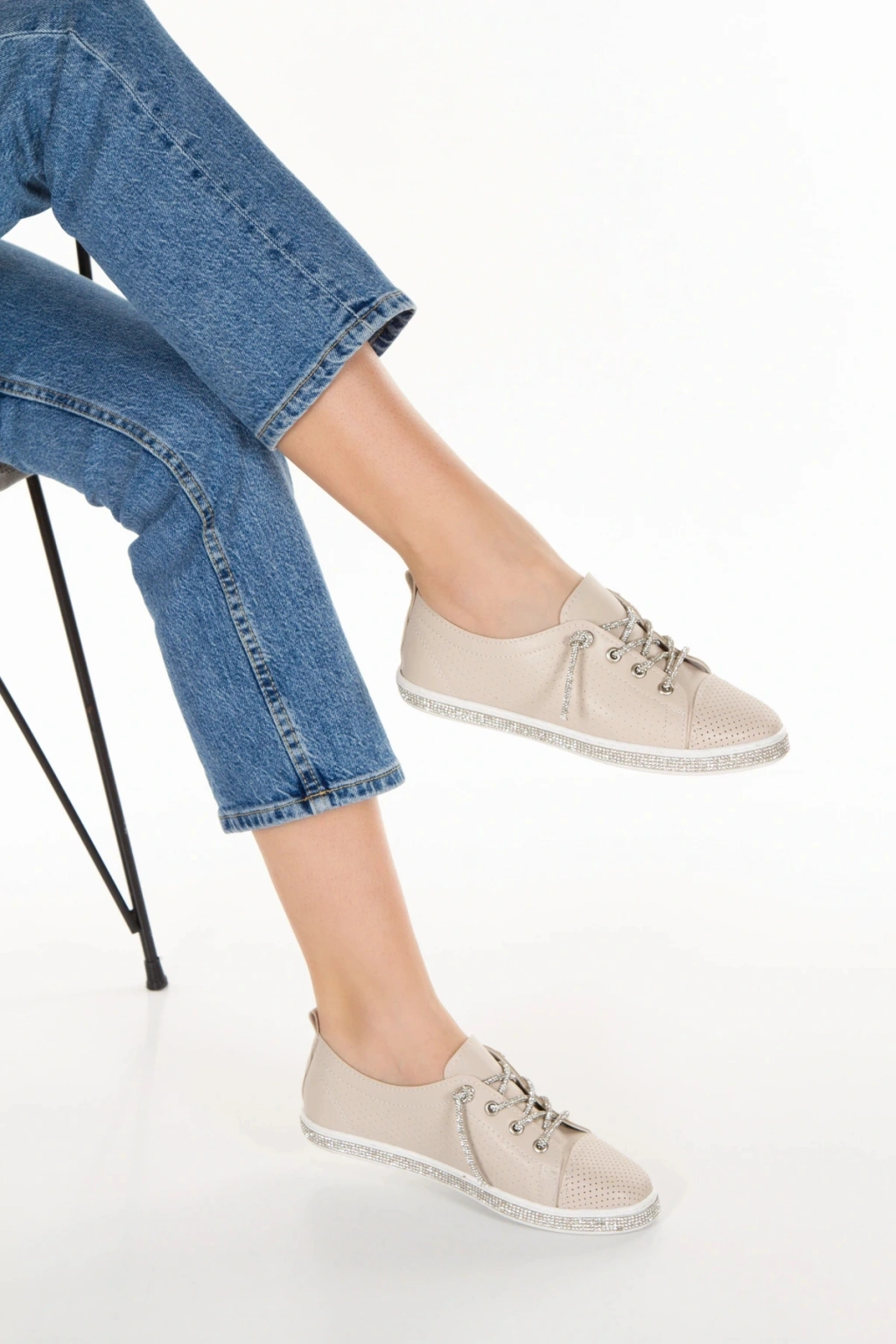 Bej Snekar Beyaz Tabanı ve Bağcıkları Taşlı Şık ve Rahat Spor Ayakkabı