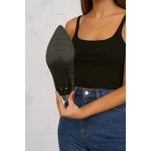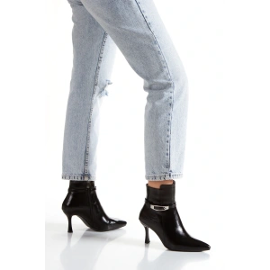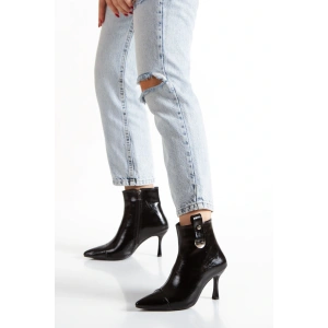 Kadın Siyah Sivri Burunlu İnce Topuklu Rahat Şık Toka Detaylı Bot