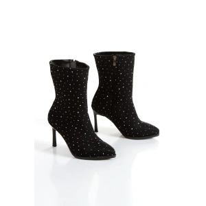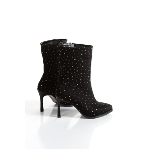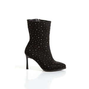 Kadın Siyah Şık Platin Damla Taşlı İnce Topuklu Rahat Bot