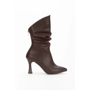 Kadın Kahverengi Suni Deri Cilt Sivri Burunlu İnce Topuklu Rahat Şık Bot