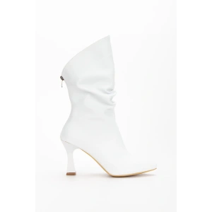 Kadın Beyaz Suni Deri Cilt Sivri Burunlu İnce Topuklu Rahat Şık Bot