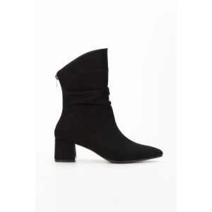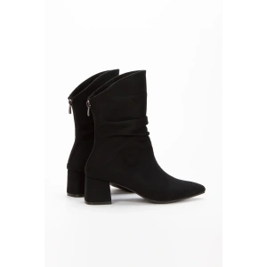 Kadın Siyah Süet Sivri Burunlu Körüklü Kalın Topuklu Arkadan Fermuarlı Rahat ve Şık Bot