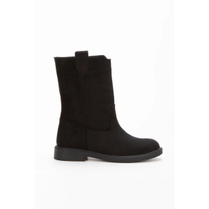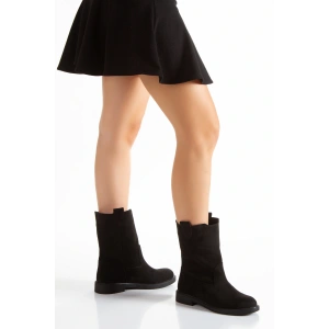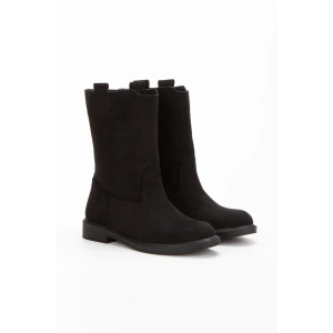 Kadın Siyah Süet Kalın Tabanlı Fermuarsız Rahat ve Şık Çekme Bot