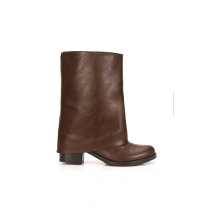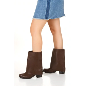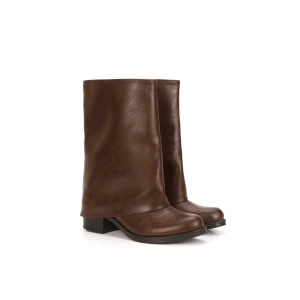 Kadın Kahverengi Suni Deri Cilt Yeni Tarz Silindir Paça Kalın Tabanlı Rahat ve Şık Bot