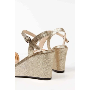 Kadın Altın ( Gold ) Sultan Parlak Damla Taşlı Dolgu Topuklu Rahat Şık Ayakkabı