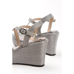 Kadın Gümüş (lame) Sultan Parlak Damla Taşlı Dolgu Topuklu Rahat Şık Ayakkabı