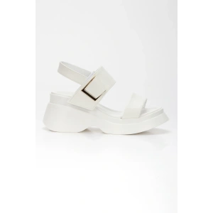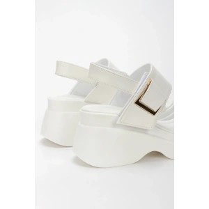 Kadın Beyaz Suni Deri CiltTek Bant Detaylı Cırt Cırtlı Dolgu Tabanlı Şık Yazlık Ayakkabı