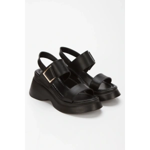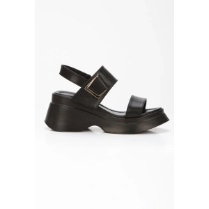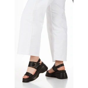 Kadın Siyah Suni Deri CiltTek Bant Detaylı Cırt Cırtlı Dolgu Tabanlı Şık Yazlık Ayakkabı
