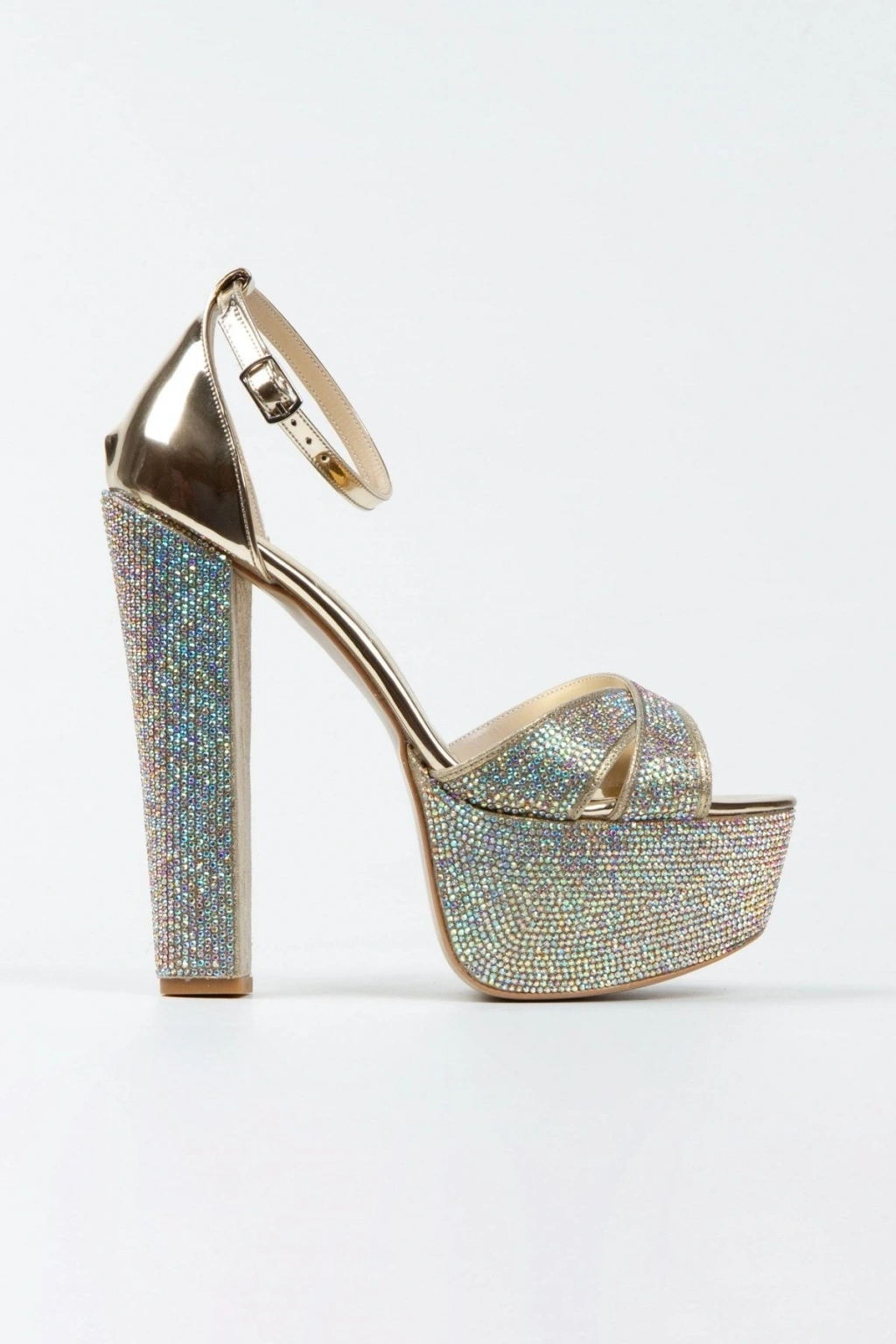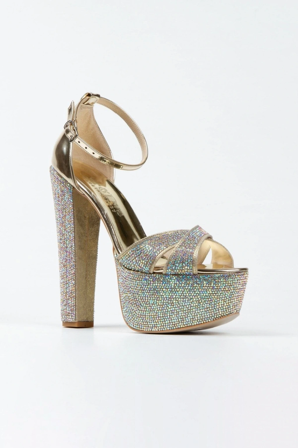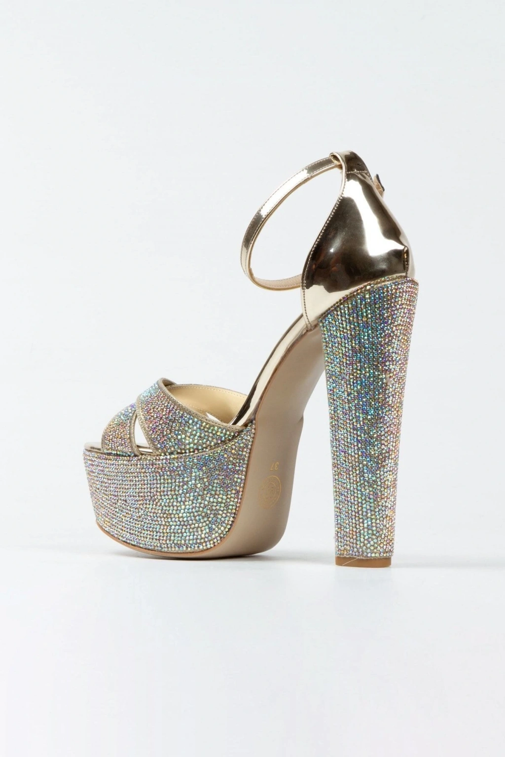 Kadın Altın Damla Taşlı Yüksek Platform Arkası Kapalı Kalın Topuklu Rahat ve Şık Abiye Ayakkabı