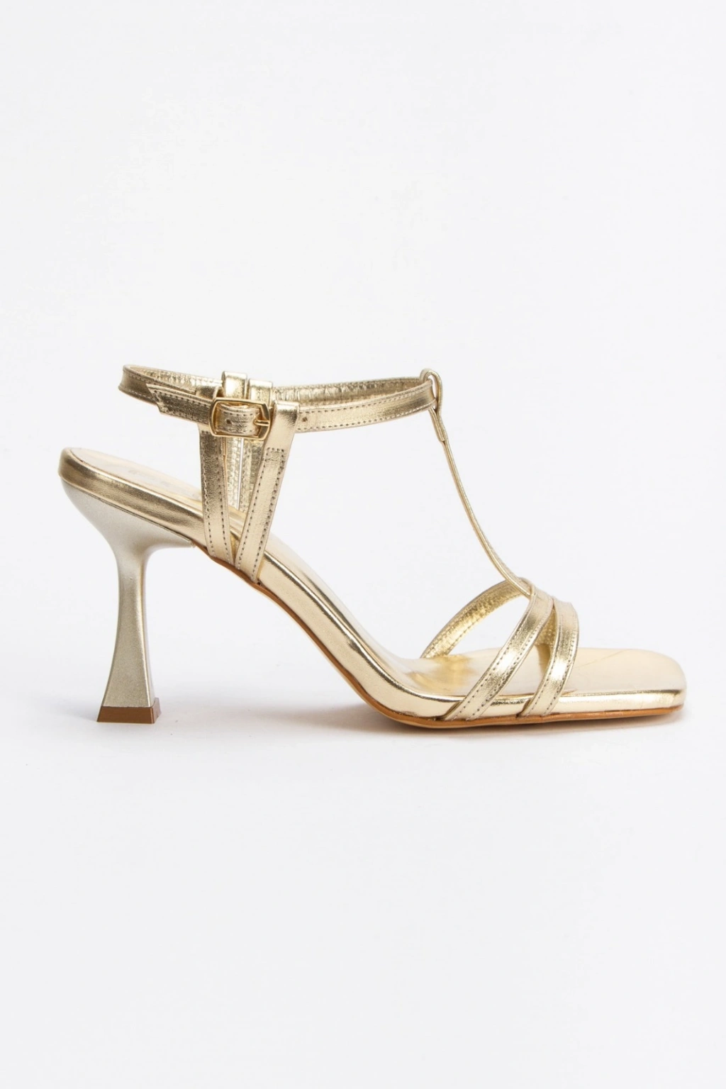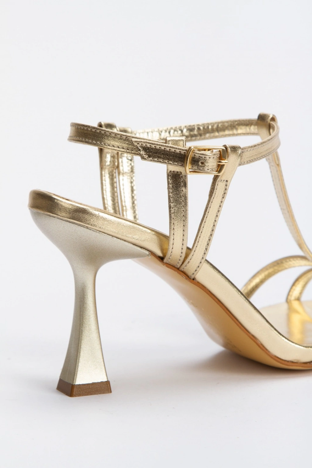 Kadın Altın Metalik Bilekten Ayarlamalı Şık Direk Model Biye Detaylı Abiye Ayakkabı