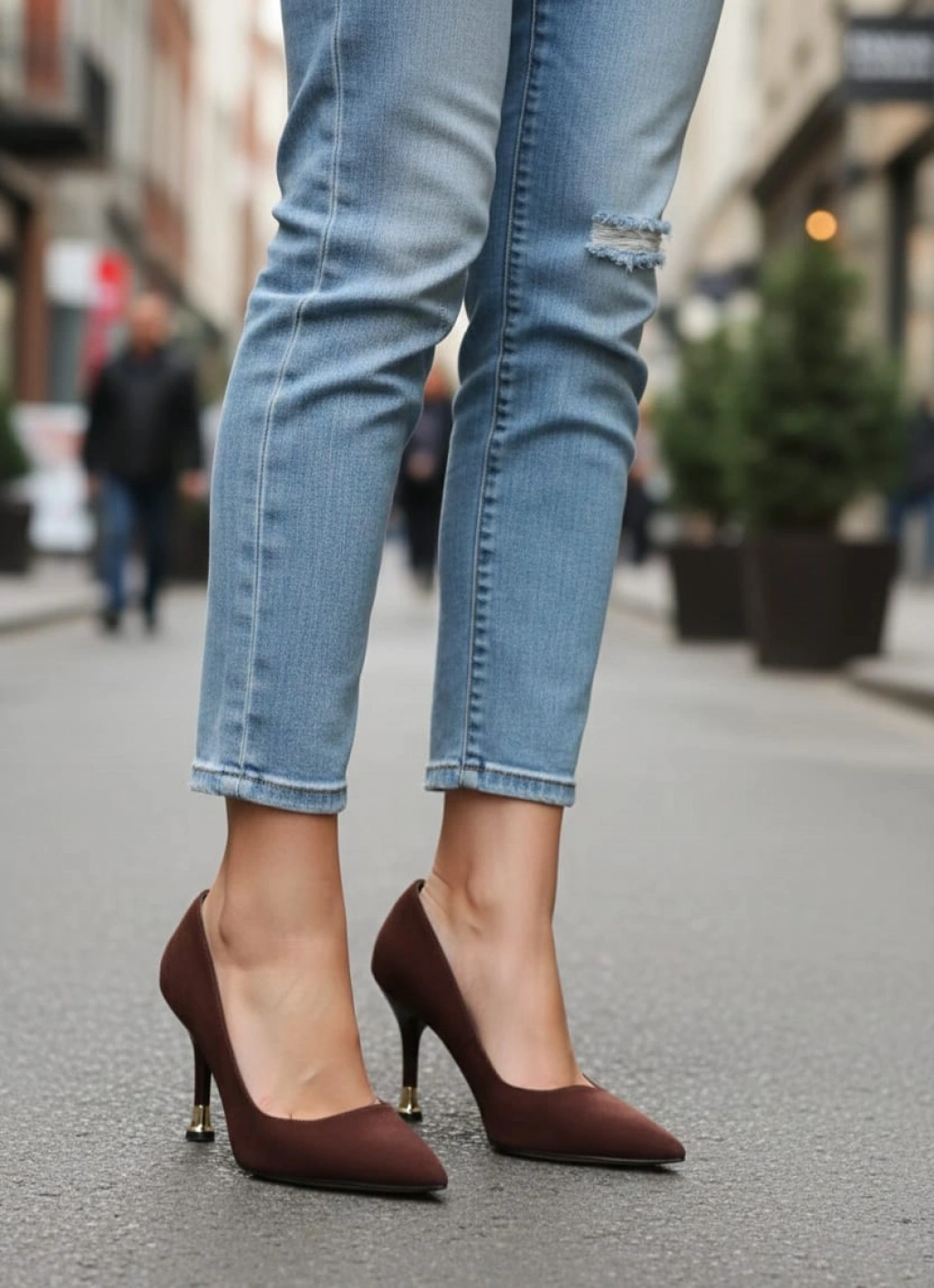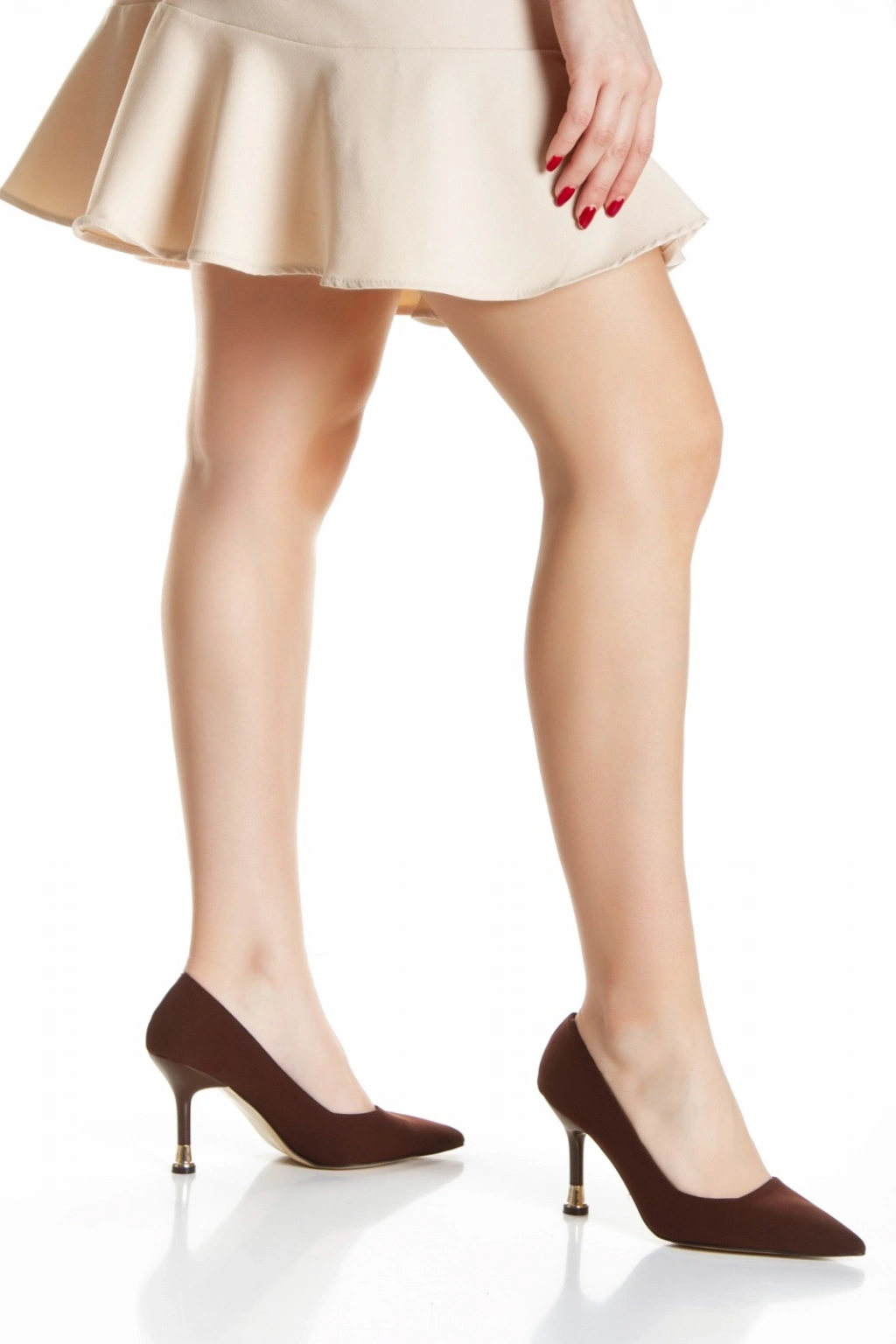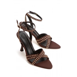 Kadın Kahve Arkası Kapalı 8 cm İnce Galvaniz Topuklu Rahat Stiletto