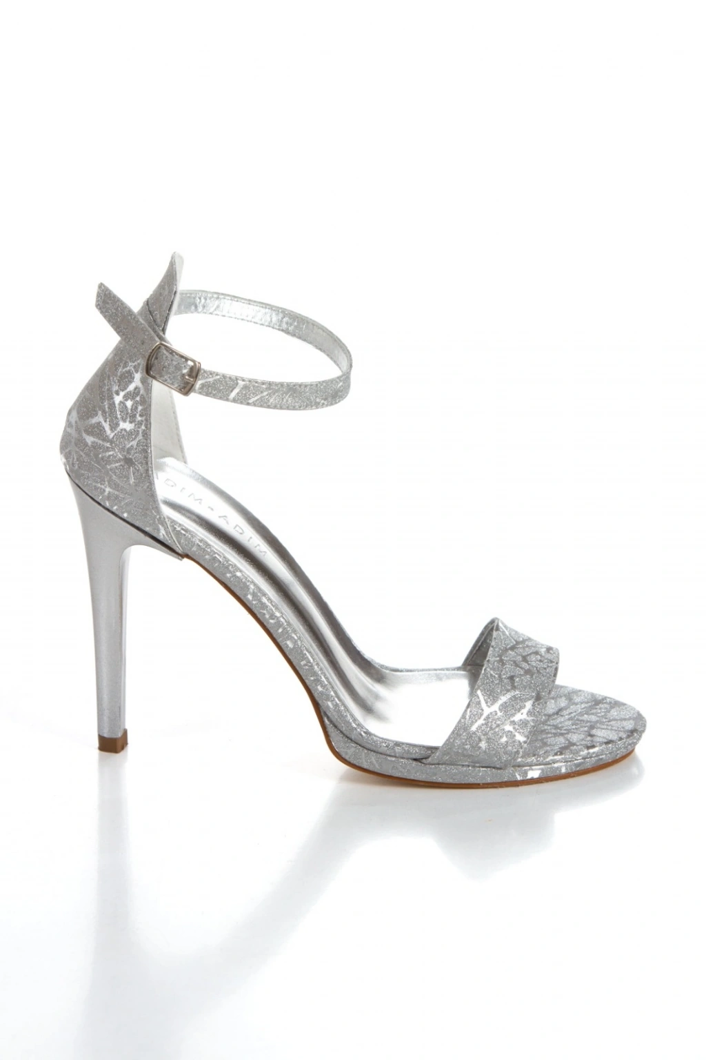 Kadın Gümüş Su Yolu Tek Bant Şık Platformlu İnce Topuklu Yazlık Abiye Ayakkabı