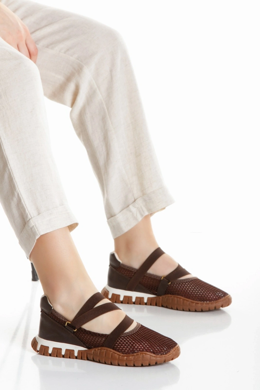 Kadın Kahverengi Cırt Cırtlı Kalın Tabanlı Ortopedik Fileli Günlük Rahat ve Şık Spor Ayakkabı