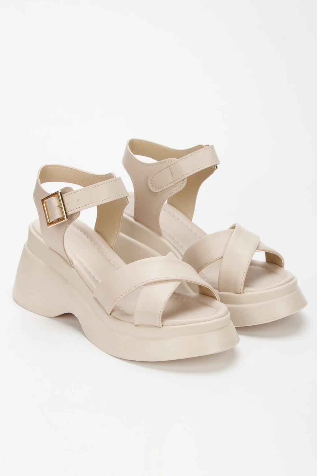 Kadın Bej Kedigözü Detaylı Dolgu Tabanlı Şık Yazlık Ayakkabı