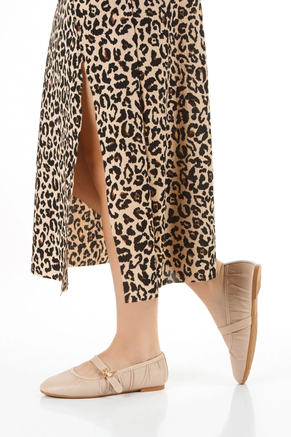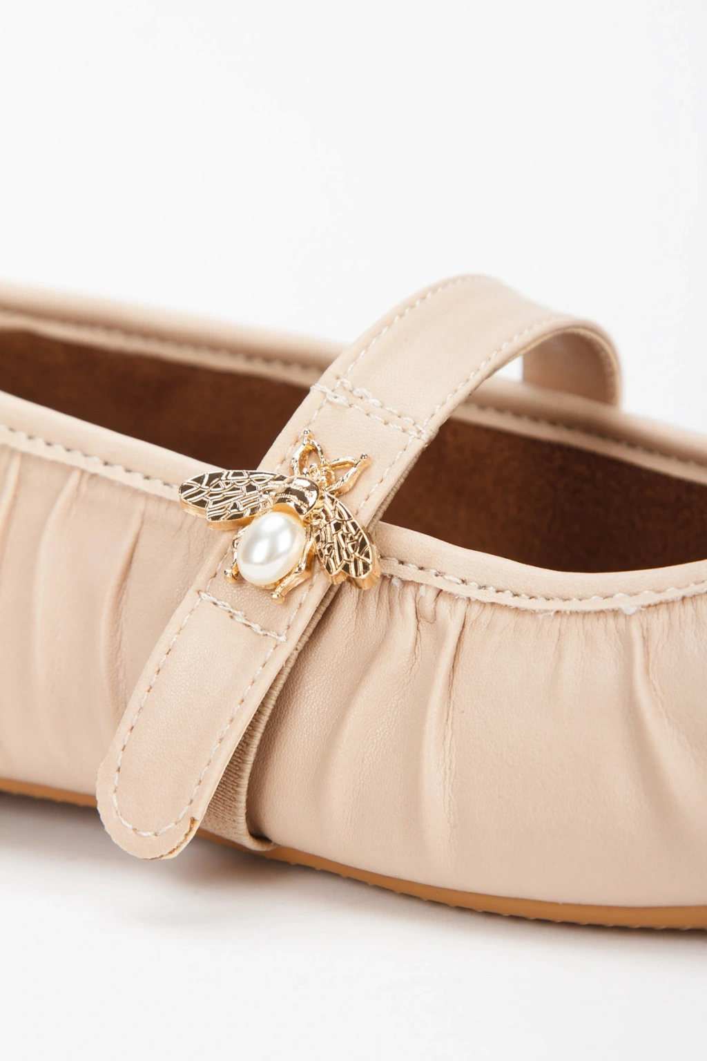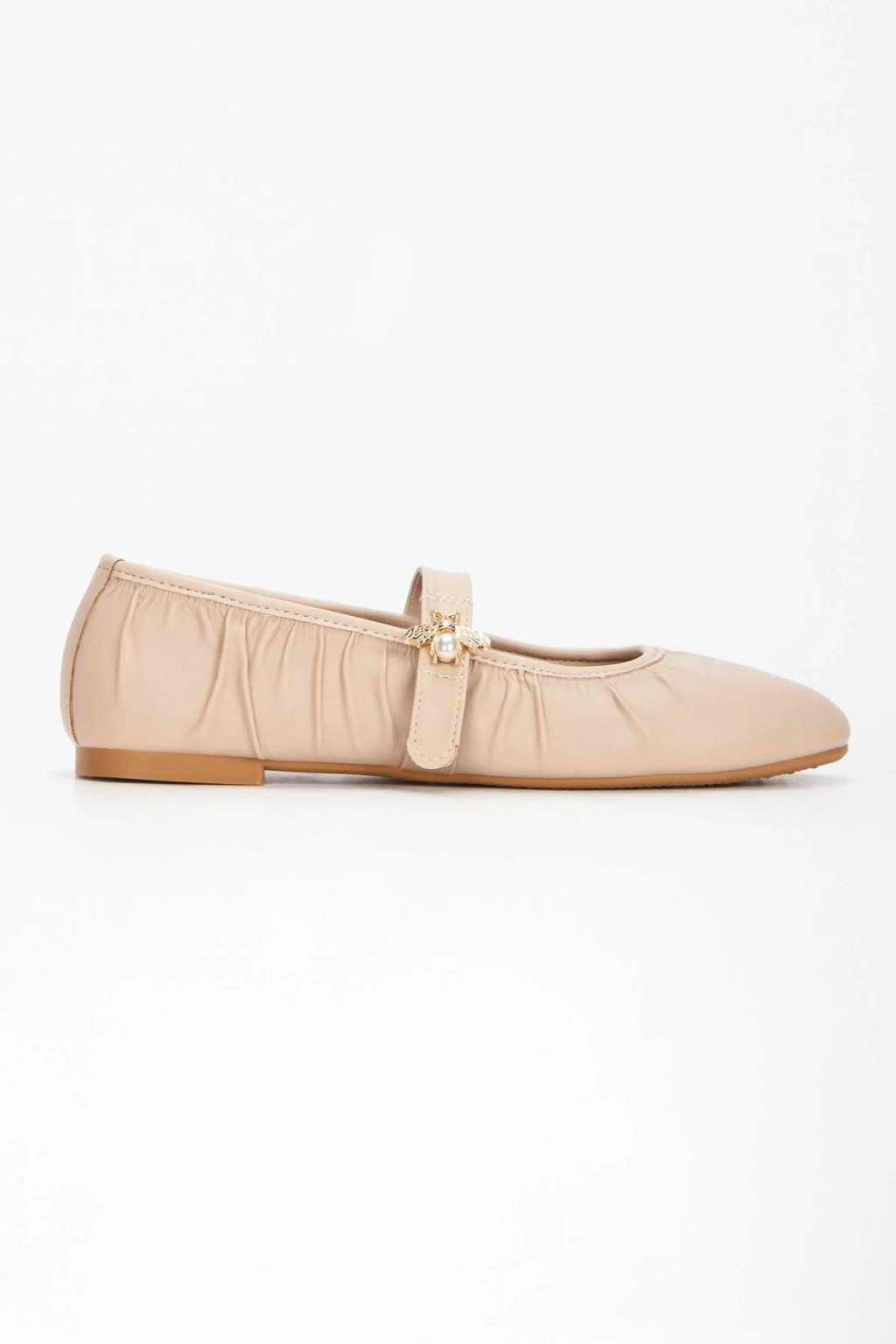 Kadın Bej Pileli Düz Topuklu Şık Toka Detaylı Rahat Babet Ayakkabı