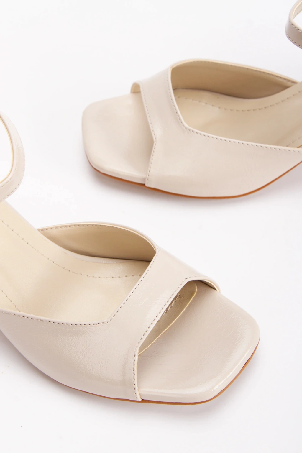 Kadın Bej Rugan Arkası Kapalı Kalın Topuklu Ayakkabı