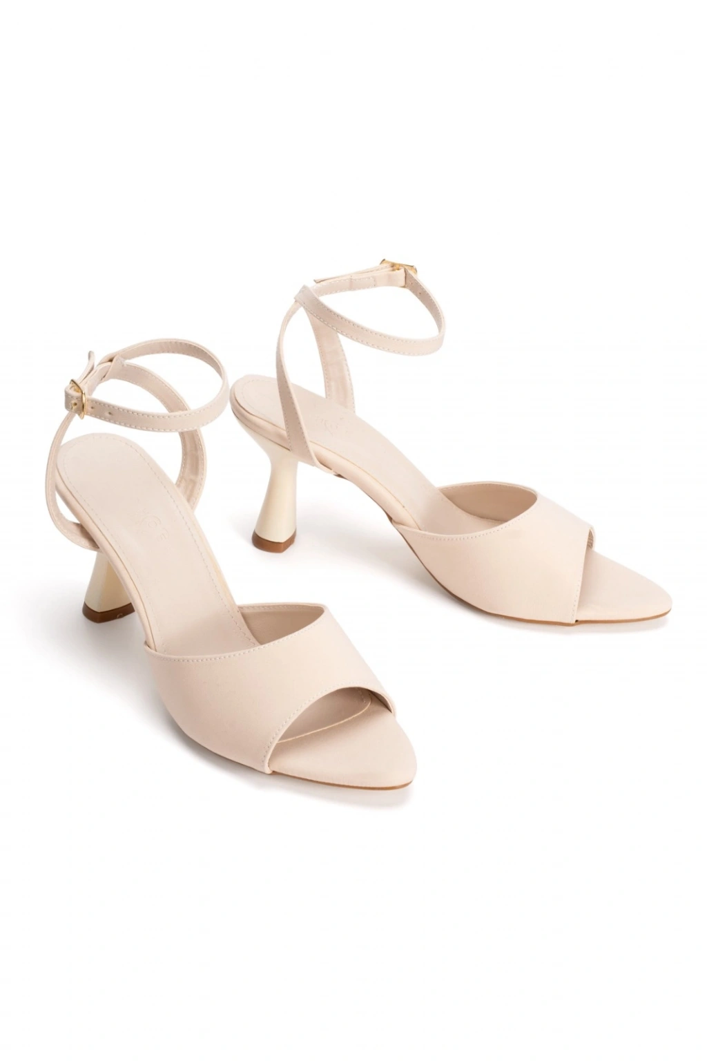 ​​​​​​​Kadın Bej Kumaş Tek Bant İnce Topuklu Yazlık Ayakkabı